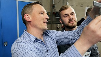 Wir Azubis hatten sogar schon mal eine Exkursion nach Süddeutschland gemacht. Zusammen mit unserem Ausbildungsleiter. Dort haben wir in einer Fabrik Azubis kennengelernt, die ganz andere Maschinen herstellen. Ein Jahr später haben wir die Azubis bei uns in Paderborn begrüßt und ihnen unsere Maschinen erklärt.