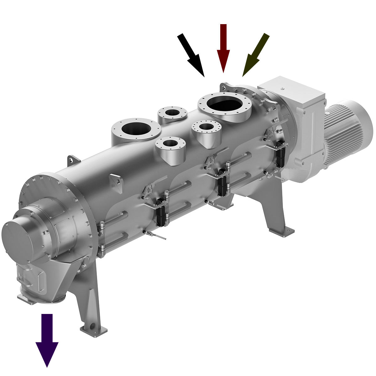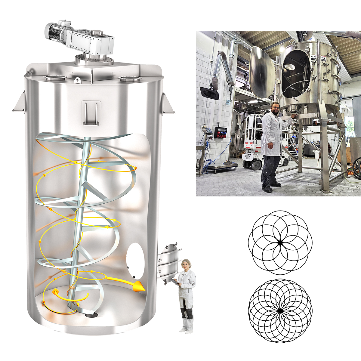Here you can see two different methods of continuous blending/ mixing / homogenising / deagglomerating / agglomerating / drying / drying / mixing.