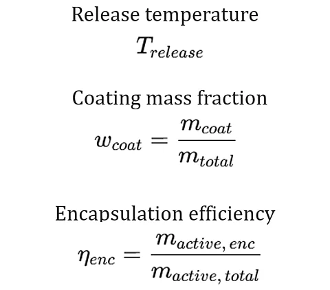 The release of the propellant is often temperature-dependent. The characteristic release temperature is known as the ‘trelease’; it depends on the properties of the coating material (e.g. melting point or glass transition temperature) and on the thickness of the layer.
