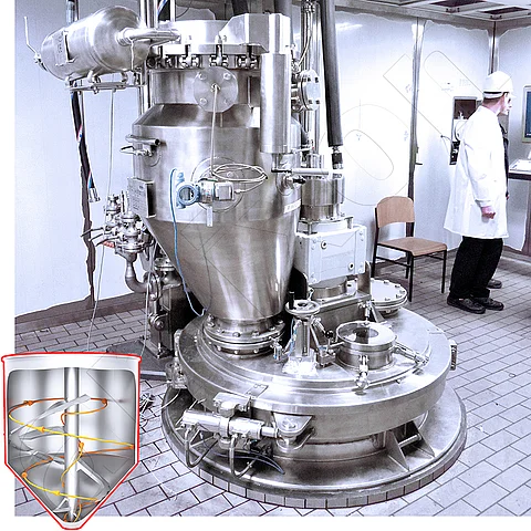 Such sterilisation and drying processes can be carried out in the amixon® sterile reactor. The equipment combines a large heat transfer surface with gentle mixing technology. This enables efficient heat transfer and uniform process control. At the end of vacuum contact drying, the atmosphere in the reactor can be topped up with nitrogen or carbon dioxide to reduce the oxygen content. This further improves the microbial stability and shelf life of spices.