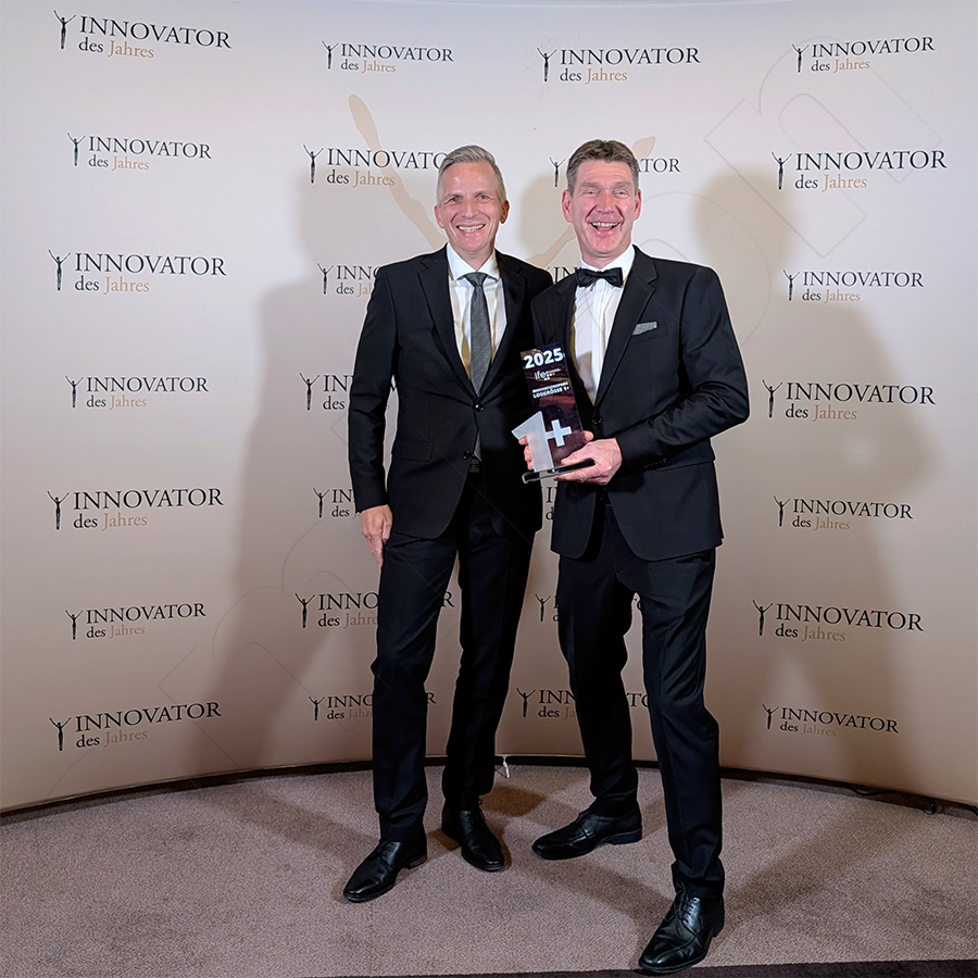 Los directores generales Bernd Fraune y Matthias Böning recibieron en nombre de amixon® el premio a la innovación ifem 2025 en Berlín.