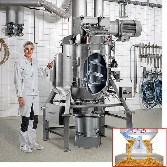 Mezclador de contenedores Excursus: Breves tiempos de carga y descarga con el mezclador industrial cónico tamaño AM 1500 de amixon®