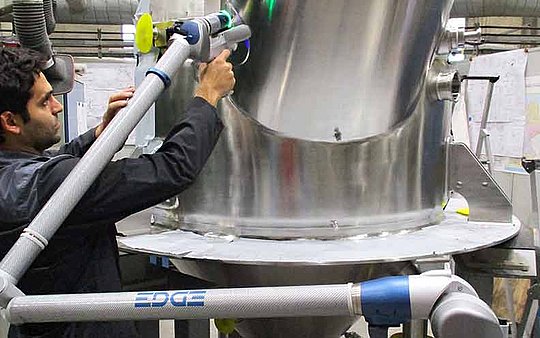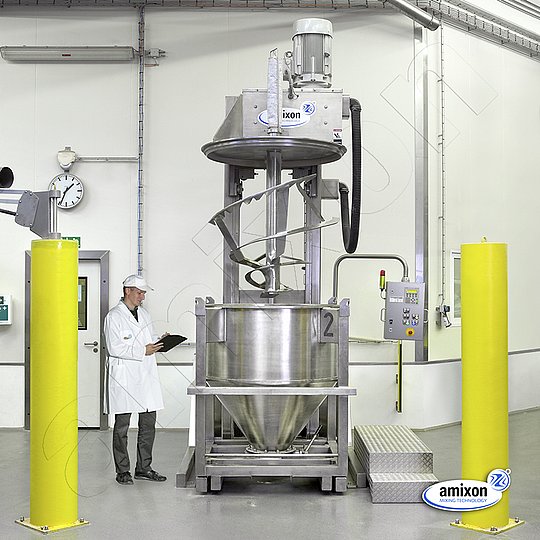 Si una planta de producción puede vaciarse sola, la limpieza es más fácil. Las mezcladoras amixon ® tienen un efecto de autolimpieza muy bueno. Salvo unos pocos gramos de polvo, todo sale de la mezcladora. Esto facilita la limpieza en seco y en húmedo.