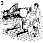 2) + 3) Rotación de todo el sistema = la cámara de mezcla se llena con el contenido del tambor