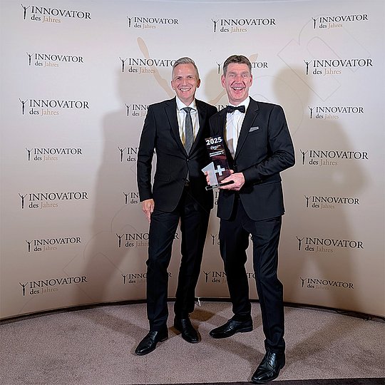 El «Premio a la Innovación 1+» del ife fue otorgado a amixon GmbH en el marco de la ceremonia de entrega del premio «Innovador del Año 2025». La entrega del premio tuvo lugar en Berlín en un ambiente festivo. Los directores generales Matthias Böning y Bernd Fraune recibieron el premio personalmente.