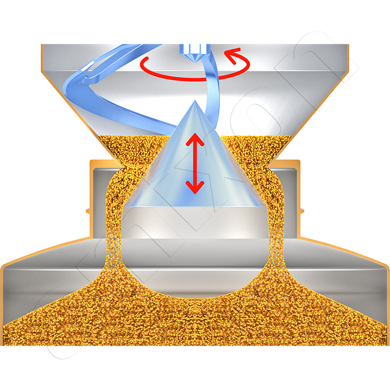 Los cuerpos de desplazamiento pueden mejorar la calidad de un mezclador de polvos. Un ejemplo de ello es el mezclador KoneSlid® de amixon®. Aquí, el cuerpo de desplazamiento permite una mezcla con bajo consumo de energía de distintos polvos. Al mismo tiempo, favorece un vaciado rápido y casi sin residuos del aparato.