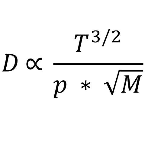 Esta ecuación muestra que las temperaturas más altas aceleran la difusión, mientras que las presiones más altas la ralentizan.