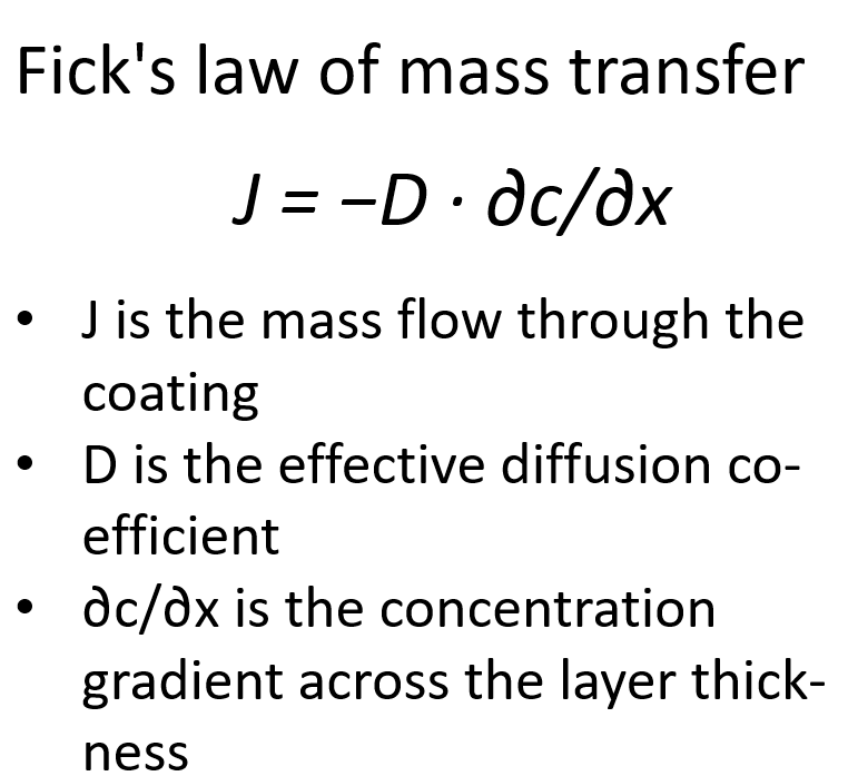 A medida que aumenta el coeficiente de difusión y la diferencia de concentración, crece la fuerza impulsora de la infiltración. Por lo tanto, para los ácidos acuosos y los medios calientes se requieren sistemas de baja difusión. A menudo se utilizan espesores mínimos de capa y sistemas multicapa.