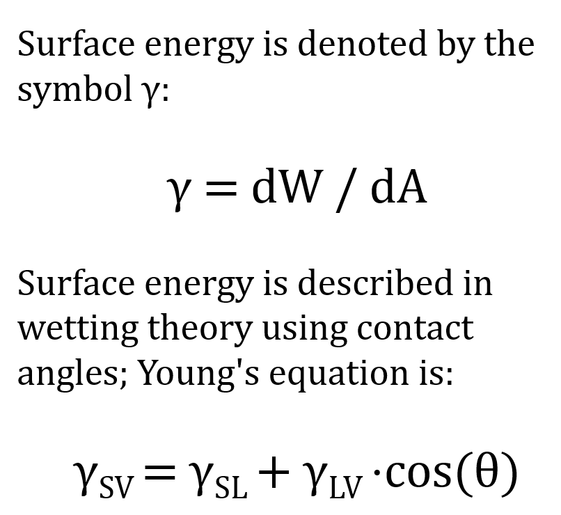 En la teoría de la humectación, la energía superficial se describe a menudo mediante el ángulo de contacto; la ecuación de Young es la siguiente:
