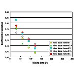 Grâce à l'écoulement sans espace mort, une qualité de mélange techniquement idéale est atteinte après environ 20 à 90 rotations. Cette qualité de mélange (distribution aléatoire idéale) ne peut plus être améliorée dans la pratique. Le processus de mélange amixon® est unique en son genre en termes d'efficacité énergétique. La vitesse périphérique de l'outil de mélange se situe généralement entre 0,5 m/s et 2 m/s et est réglable.