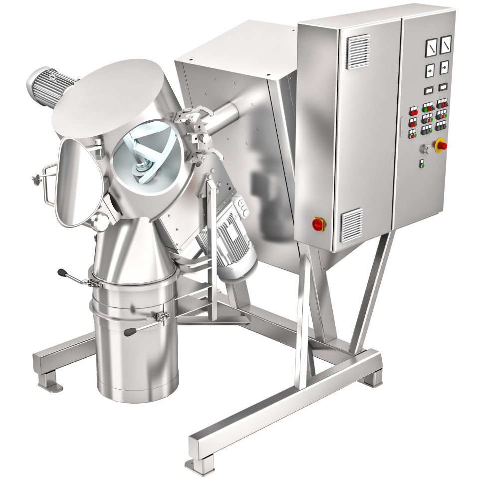 Il miscelatore a un'asta con fusto standard è flessibile ad esempio per ordini di produzione di piccole dimensioni e per la preparazione di premiscelati. Altri campi di applicazione di questo apparecchio flessibile e compatto sono gli ordini di miscelazione "Just-in-time" e lo sviluppo di prodotti. Garantisce miscele tecnicamente ideali; l'intensità della miscelazione o la modalità di preparazione sono regolabili: gli apparecchi sono adatti, tra le altre cose, per omogeneizzare, miscelare intensamente, umidificare con bassa introduzione di energia, umidificare con alta introduzione di energia, desagglomerare, granulare, asciugare e istantaneizzare.