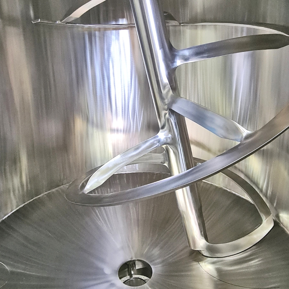 デリケートで多孔質またはスプレードライした粉末は、シアリングに敏感に反応します。粒子の破壊、粉塵の発生、またはインスタント特性の喪失が起こるかどうかは、実験でしか確認できません。amixon®ミキサーは、最小限のエネルギー投入で作動し、大量の場合でも特に優しい均質化を可能にします。そのため、私たちは意図的に実践的な設備サイズでテストを行っています。