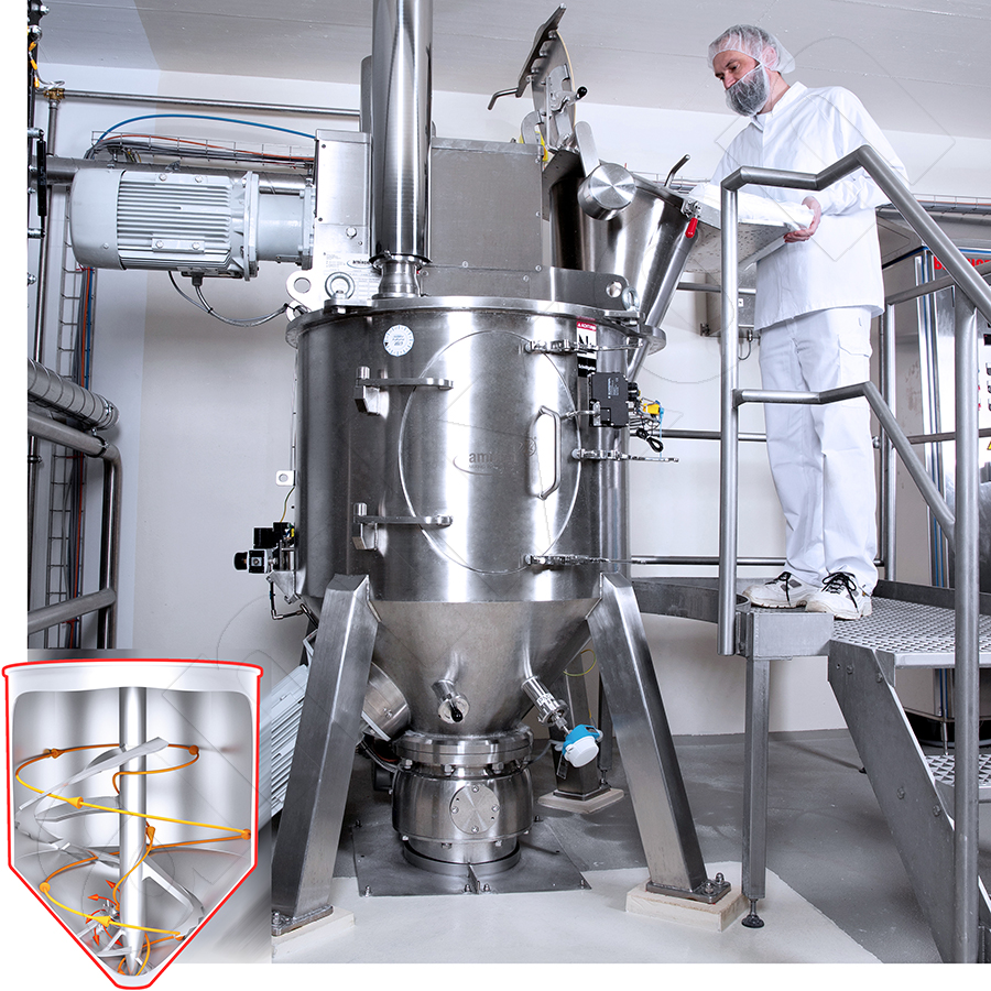 amixon® produkuje mieszalnik Gyraton®. Gyraton® może przechowywać duże ilości materiałów sypkich i mieszać je z wysoką precyzją. Łączy w sobie funkcję silosu i precyzyjnego mieszalnika. Dzieje się tak niezależnie od właściwości materiału: suchego, wilgotnego, dobrze sypkiego, słabo sypkiego, o różnej gęstości nasypowej, różnej wielkości ziaren, .......