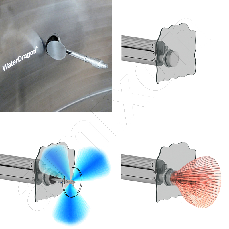 Mieszalniki amixon® są wyposażone w programowalne dysze czyszczące. Obejmują one całą komorę mieszania. Obszary szczególnie zabrudzone są czyszczone intensywniej. Ta strategia czyszczenia pozwala zaoszczędzić czas, wodę i energię.